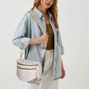 Checkered Nylon Crossbody Bag Women Spacious Fanny Pack Travel Casual