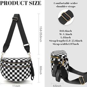 Checkered Nylon Crossbody Bag for Women Adjustable Shoulder Strap Everyday Use