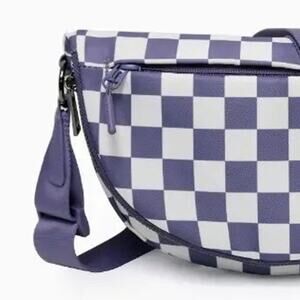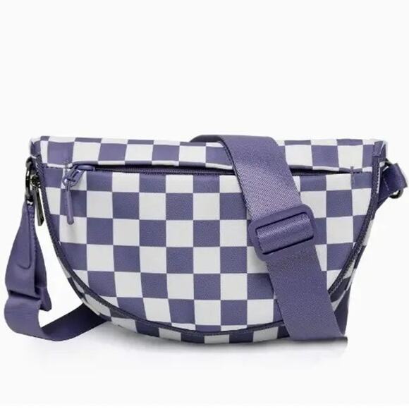 Checkered Nylon Fanny Pack Sling Bags Purple White