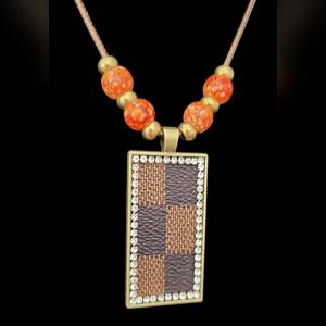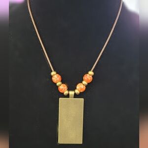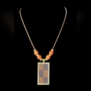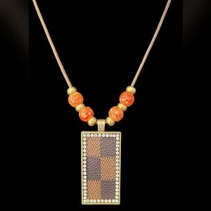 This stunning necklace features a unique blend of gold and orange beads, perfect for adding a touch of elegance to any outfit.