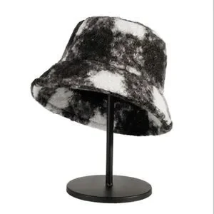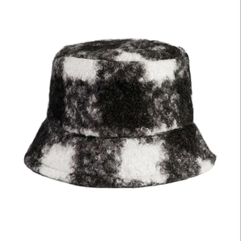 Checkered Pattern Fuzzy Bucket Hat