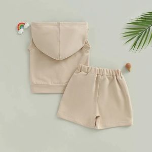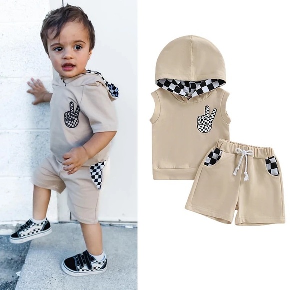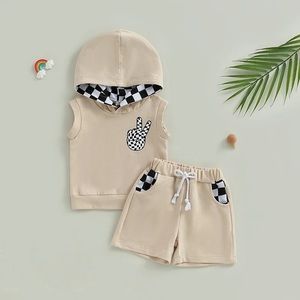 0-3Y Toddler Baby Boys Clothes Sets 2pcs Checkerboard Patchwork Sleeveless Hooded Vest Drawstring Shorts Sets