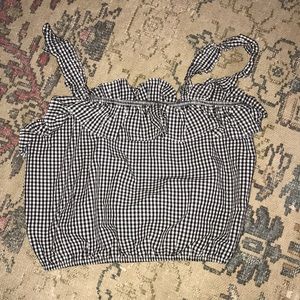 Adorable black and white checkered tank with ruffle detail around the top and straps. Cropped and cinched at the top and bottom ⚡️⚡️⚡️