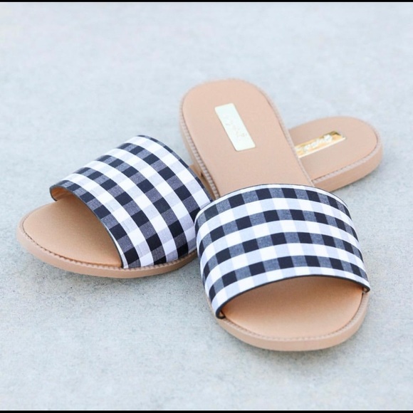 Black and white checkered slides. Brand new, in box. Fits true to size.