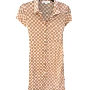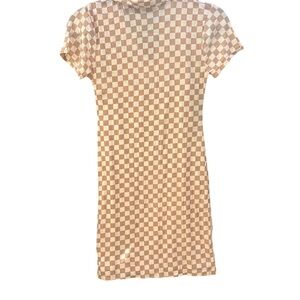 Stylish checkered tan dress perfect for casual outings. Features a comfortable fit and chic design.