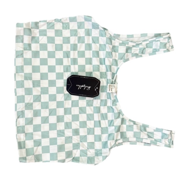 Stylish checkered tank top with a modern design. Perfect for casual wear. SOLY HUX Women's Top teal color Checkerboard Square Neck Cropped Tank