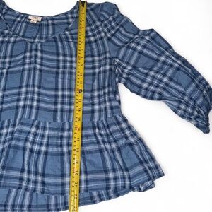 Chic navy checkered top. Soft fabric. Perfect for casual outings.