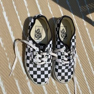 Checkered Vans. Youth boys size 4.5 in men’s = 6 women’s. I bought secondhand, worn a handful of times by me, and they’re ready for a new home.