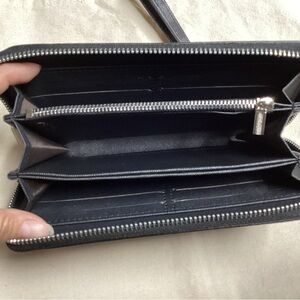 New checkered wallet with gold hardware, wristlet strap, 5 inner slip compartments, 1 inner coin zip compartment, & 12 card slots.