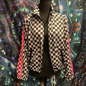 Checkered Women's Jacket with Pink Stripes