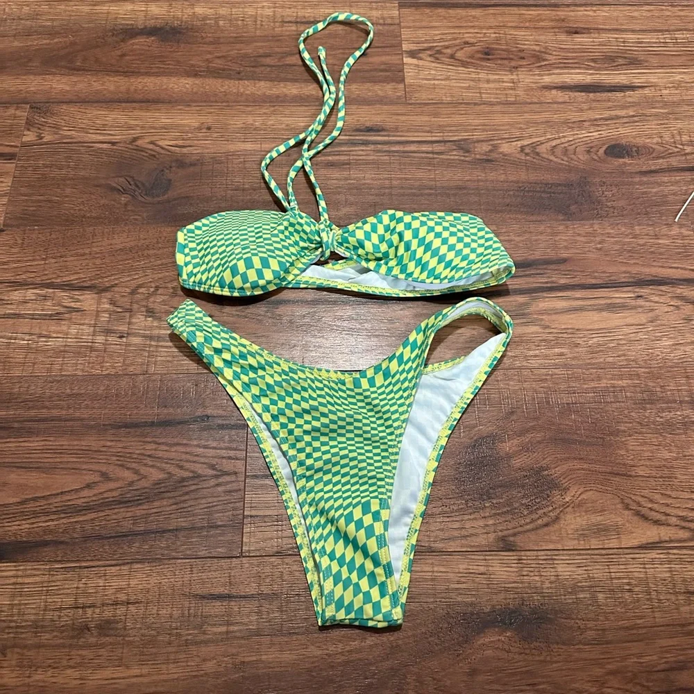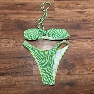 Green and yellow checkered bikini NWOT