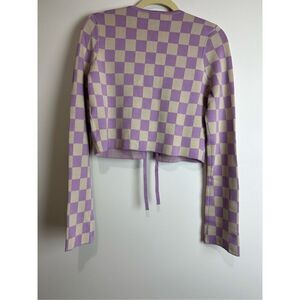 - Checker board tie closure crop knit cardigan top