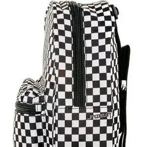 Strategized your moves and wait for the beat drop. The Fydelity Checkmate Mini Backpack will keep you on your toes. This fun rave festival backpack features a black and white checkered graphic material on super lightweight durable base with front exterior zipper pocket, dual adjustable shoulder straps, top handle, one main compartment with inner slip pocket, and secure dual zipper closure. Now, who's next to battle?
