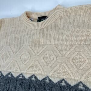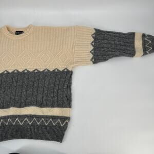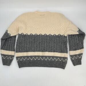 Checkmate New Wool Sweater New Zealand Size Large Chunky Cable Knit Gray Cream