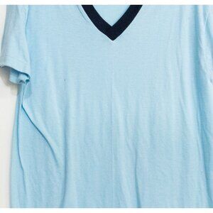 Ched by Anvil Womens Blue Polycotton Over Size Tee V Neck Short Sleeve One Size