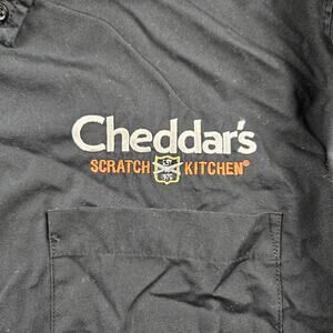 Cheddar's Shirt Work Uniform Button Up Long Sleeve Black Mens L Scratch Kitchen
