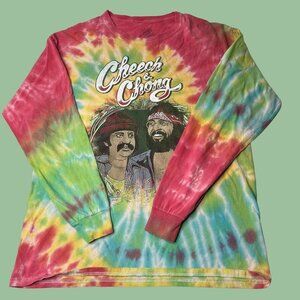 Cheech Chong Shirt Adult Medium Tie Dye Portrait Long Sleeve Hippie Flower Power
