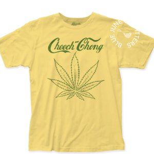 New in! This vintage style Cheech & Chong tee is a yellow color and made of 100% cotton. Features a green hemp leaf motif.