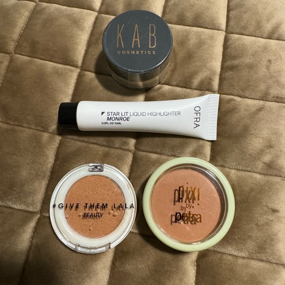 Give them Lala Bronzer in Ibiza, Pixi by Petra Blush in Beach Rose, Star Lit liquid highlighter in Monroe and KabTranslucent setting powder. All new- never used $79 vaule