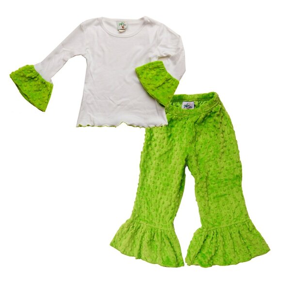 Cheeky Banana Minky Dot Ruffle Tee & Pants Set LIME GREEN
