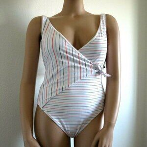 These super chic and trendy one piece bathing suit features pin stripe pattern fabric. Cheeky high leg. Removable bra padding. Full coverage bathing suit. Stretchy fabric for a comfortable fit!