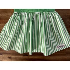 Cheeky Plum OG Green Stripe Dress in Size 18/24 Months. Good used condition only for a faint stain on front of skirt (not super noticeable; almost missed it; see pictures). Otherwise, rest of dress is in excellent used condition. Super cute for your little girl or someone special!