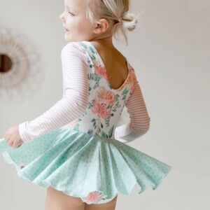 Cheeky Plum Peachy Keen Floral Farrah Leotard VGUC 5T Peach & Green