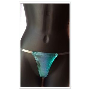 Aqua metallic, minimal coverage thong with elastic straps *item can be custom made