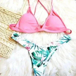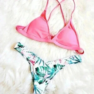 Cheeky tropical floral print pink bikini Size Small NWT