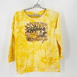 Cheekys Raisin Hell With The Hippies And The Cowboys loose fit tie dye yellow sweatshirt