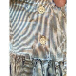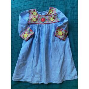 This Cheeni Lysette dress in size 3T is a delightful piece inspired by traditional Oaxacan embroidery. The intricate detailing on the neckline and sleeve cuffs, paired with playful allover blue and white stripes, makes this dress a unique statement for your little one's wardrobe. Lightweight and breathable, it's perfect for warm days or special occasions. The craftsmanship brings together cultural flair and modern style for a truly adorable outfit. Like the ones made by Mi Golondria!