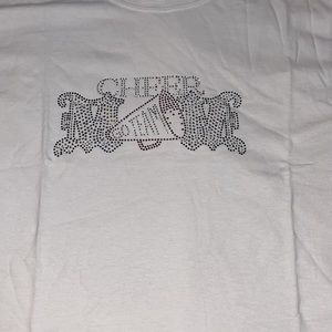 T-Shirt. “Cheer Mom Go Team” Rhinestones. Color-White. Size- Basic Medium. NWT