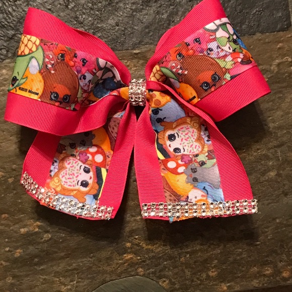 Hand made shopkins cheer bow 3"pink ribbon