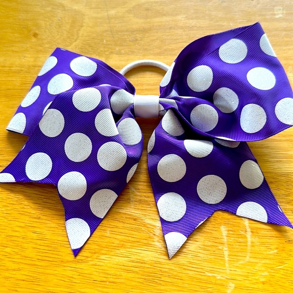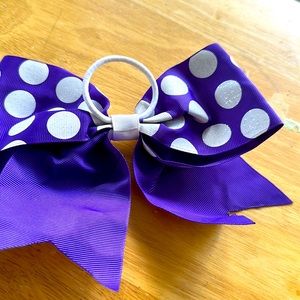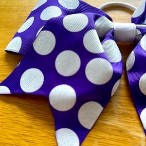 Purple with white polka dot cheer bow
