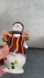Add a touch of whimsy to your holiday decor with this cheerful snowman figurine. Featuring vibrant red and gold accents, it's perfect for creating a festive atmosphere. Ceramic snowman star holiday decor figurine features a green hat, navy scarf, a red and gold striped jacket, and a green tinged white snow base. The snowman holds two gold star ornaments that swing when moved. Has silver wings on his back. Very festive piece of holiday decor.