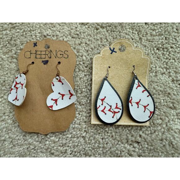 Cheerings 2 pair Baseball Fan earrings dangle sports lover heart