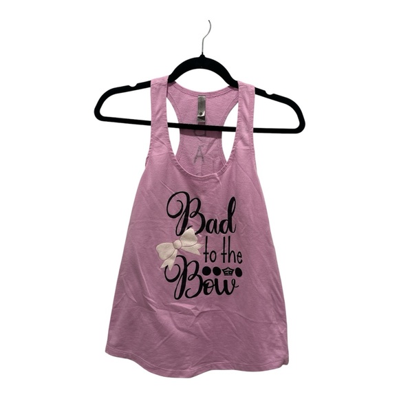 Light pink racerback tank with l graphic print along the back. Soft knit and casual fit. Easy layering piece for everyday wear. Cheerleading quote on front and back. Size small.