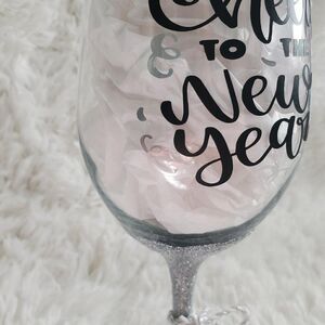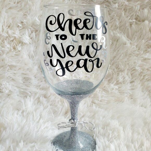 Are you super excited to get this year behind us and start fresh in the upcoming year? Are you having a New Year's Celebration? Looking to show off your new wine glass at a New Year's Eve party? Looking for simple NYE party favors for your big party? Or are you looking for a gift for someone? Which Ever is the case this Cheers To The New Year's handmade Wine Glass is the one you need! This silver glittered 20oz wine glass is the perfect glass to celebrate the new year. Get ready to celebrate the new year! This glass is definitely ready to hold all of your new years wine!