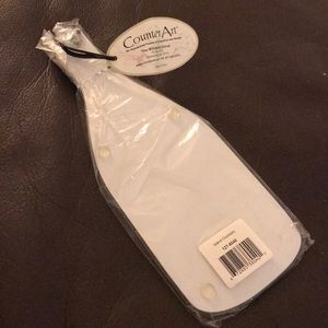 Wine bottle shaped cheese server with cheese knife. Full Strength Tempered Glass Dishwasher Safe Peel/Fade/Scratch Resistent Non-skid Feet