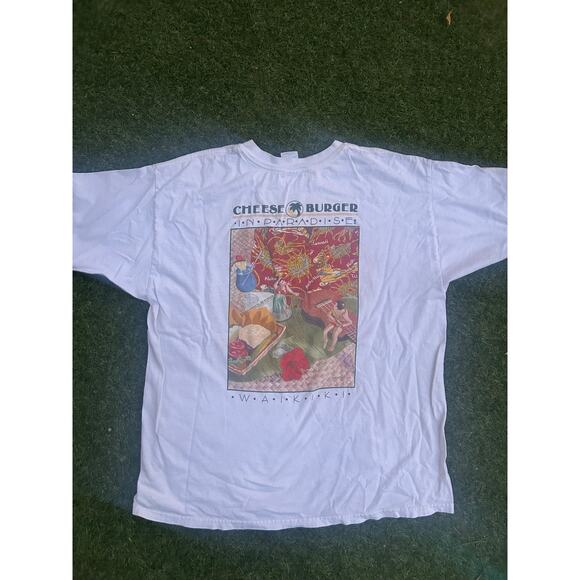 #CheeseburgerInParadise #WaikikiTshirt #HawaiiSouvenir #VintageHawaii #BeachwearStyle #RetroTshirt #VacationVibes #IslandStyle #TouristTshirt #90sVintage #GraphicTee #HawaiianStyle #XLVintageTee #CollectibleTshirt