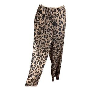 Cheetah Animal print fully sequin ruffled waist soft flowy pants size large new