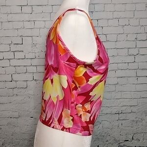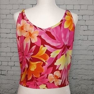 Cheetah Pink & Yellow Tropical Floral Cropped Swim Tank XL