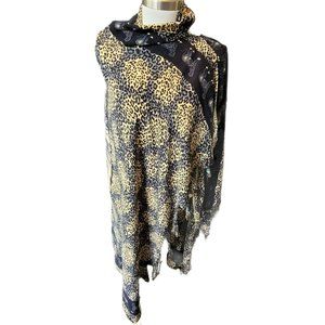 Cheetah Lion Shawl Wrap Gray Yellow Graphic Beaded Unique 62x27 JJ1012