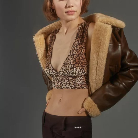 Velvet cheetah print with mesh. Cross back, non adjustable. Waist tie.