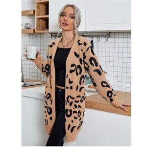 Cheetah Print Camel Tan Open Cardigan Thigh Length Long Sleeve
