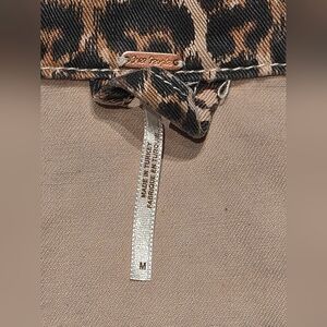 Stylish leopard print denim jacket. Features a classic button-up front and frayed hem.