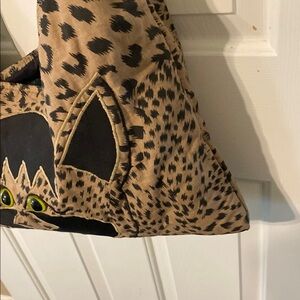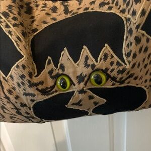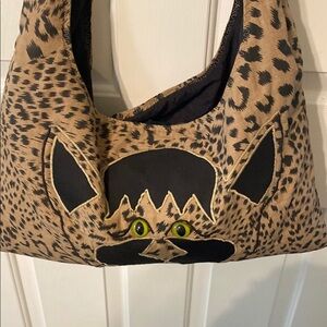 Stylish shoulder bag featuring a unique cat design with a leopard print. Perfect for adding a touch of fun to your outfit.
