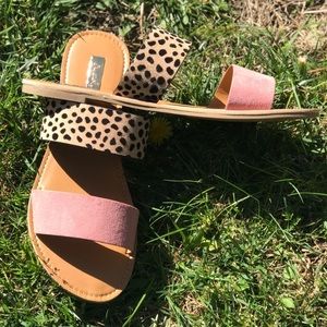 Cheetah and light pink double band slide sandals. Super cute for summer! Brand new in box. Two pairs available- 6.5 and 8. One of my favorite pairs!!✨ almost sold out!