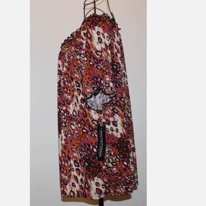 Cheetah Print Top Tan Multicolor Shirt XL NWT Convertible Stretch Neck Blouse