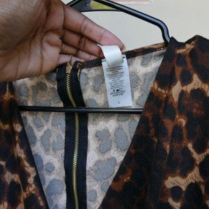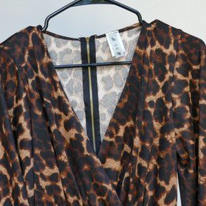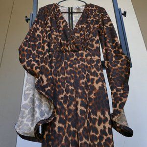 Cheetah Print Zipper Back Jump Suit Drama Sleeves